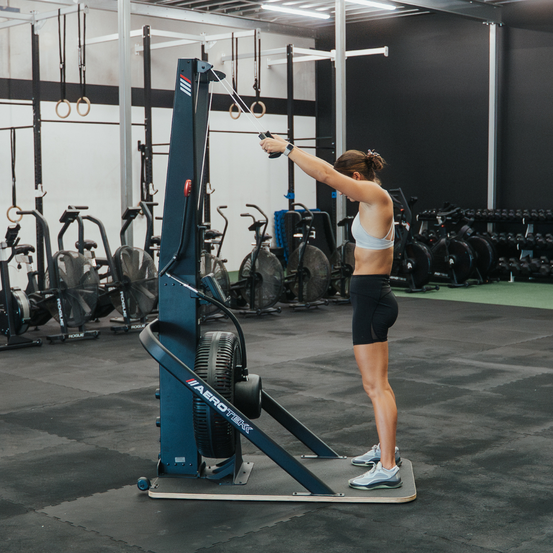 AEROTEKK ROW is a highly evolved version on a classic ergometer, enhanced through decades of elite experience and product development. Biomechanics are enhanced with lower foot stretcher position availability, more closely akin to rowing boat ergonomics, facilitating longer stoke potential and minimizing the risk of lower back strain.