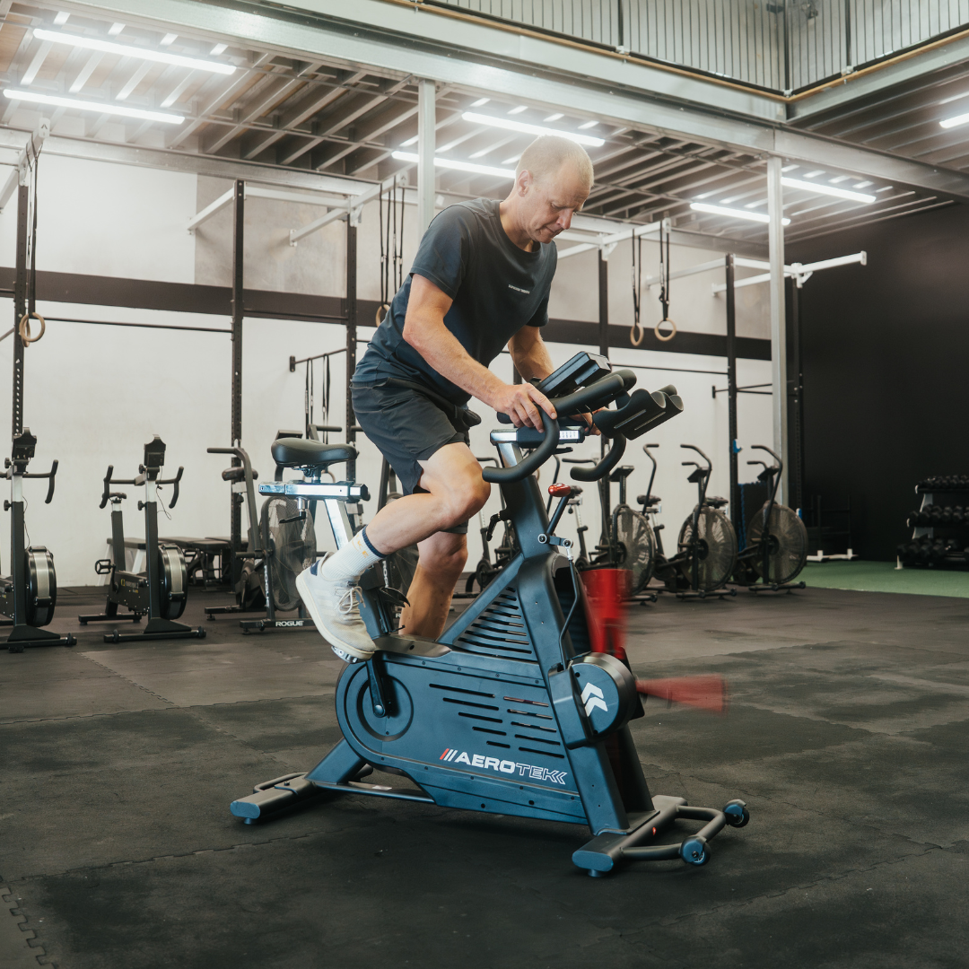 AEROTEKK CYCLE is the closest you will come to experiencing the realistic feel of climbing a steep hill on an indoor cycle ergometer, facilitated by the high loads provided in the top range of effectively calibrated 100 gears, whilst maintaining smooth positive feedback inertia.