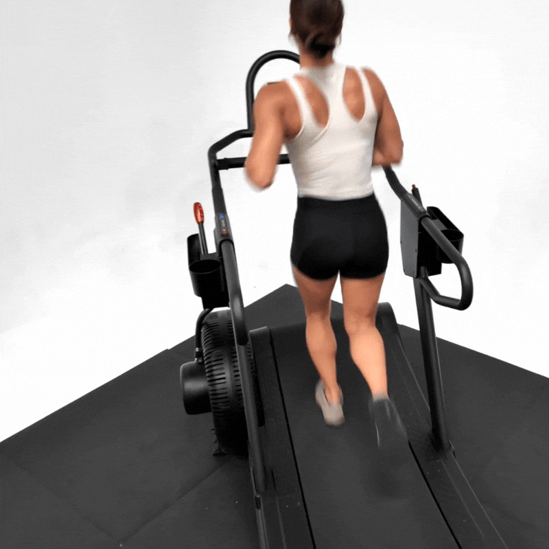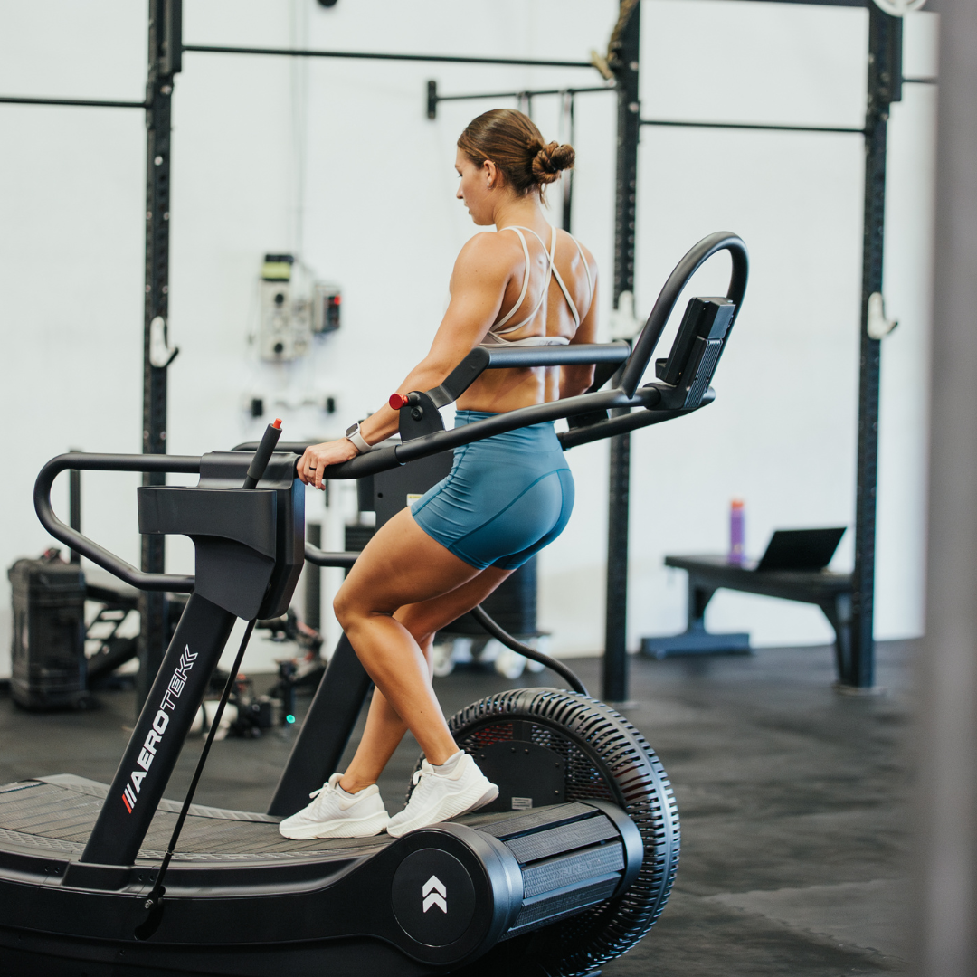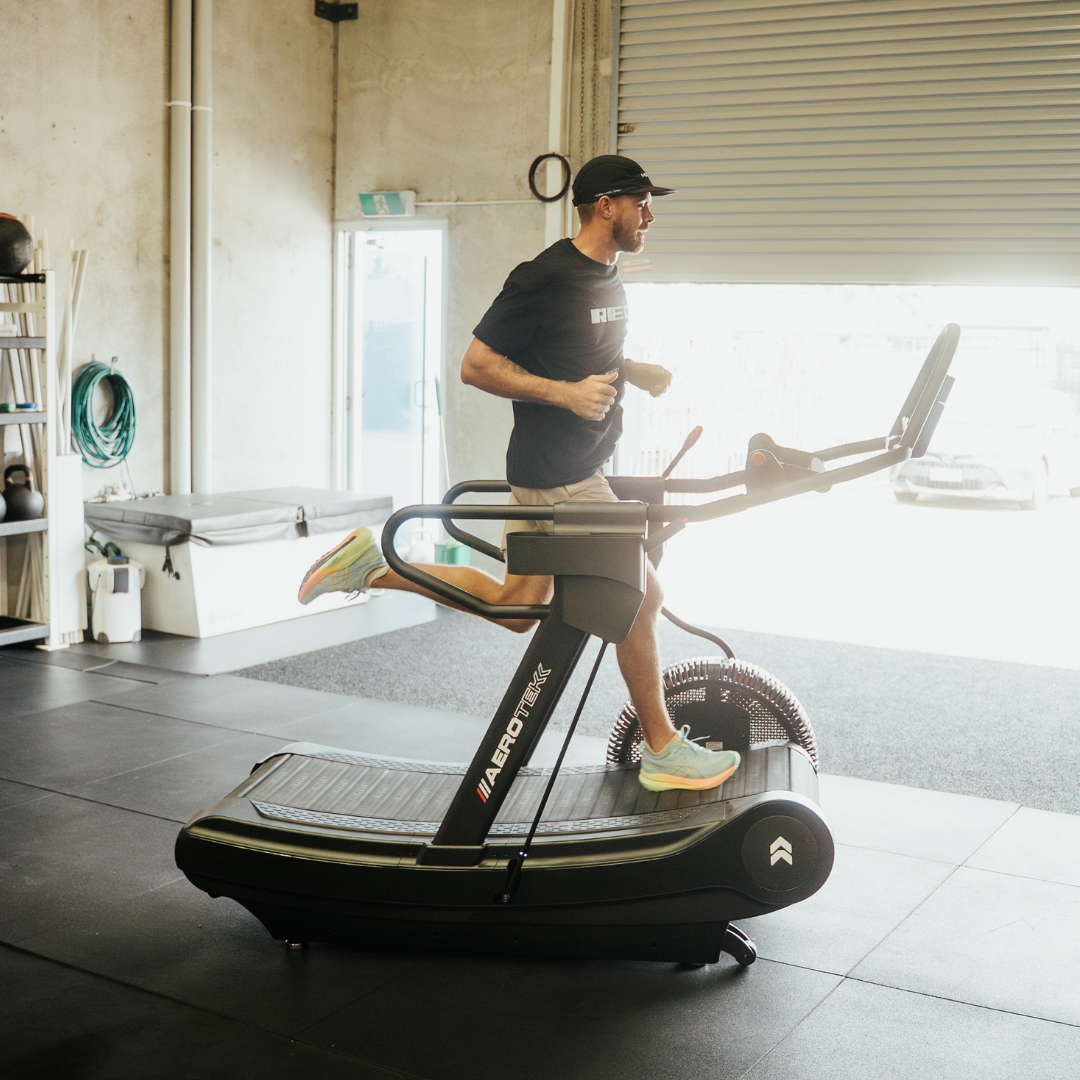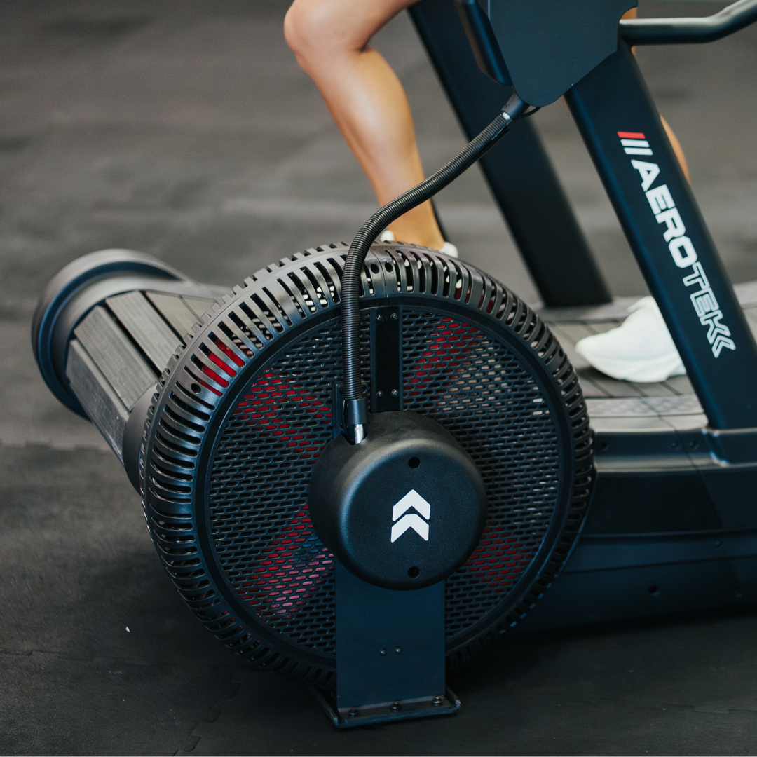 AEROTEKK TREAD/SLED is the first curve treadmill with non-magnetic resistance, realistically mimicking the feeling and inertia of pushing a sled, car, or truck. Uncompromising engineering excellence and robust design, making it perfect for the most demanding commercial and sporting applications. Patented, Variable Pitch Rotor (VPR) air resistance technology in Sled Dive Mode delivers dynamic resistance control, ideal for users of all fitness levels. Our patented turbine engage/disengage mechanism allows the user to easily switch between smooth, low friction running and the unique sled drive mode, featuring unprecedented load levels and inertia, facilitating versatile training options.