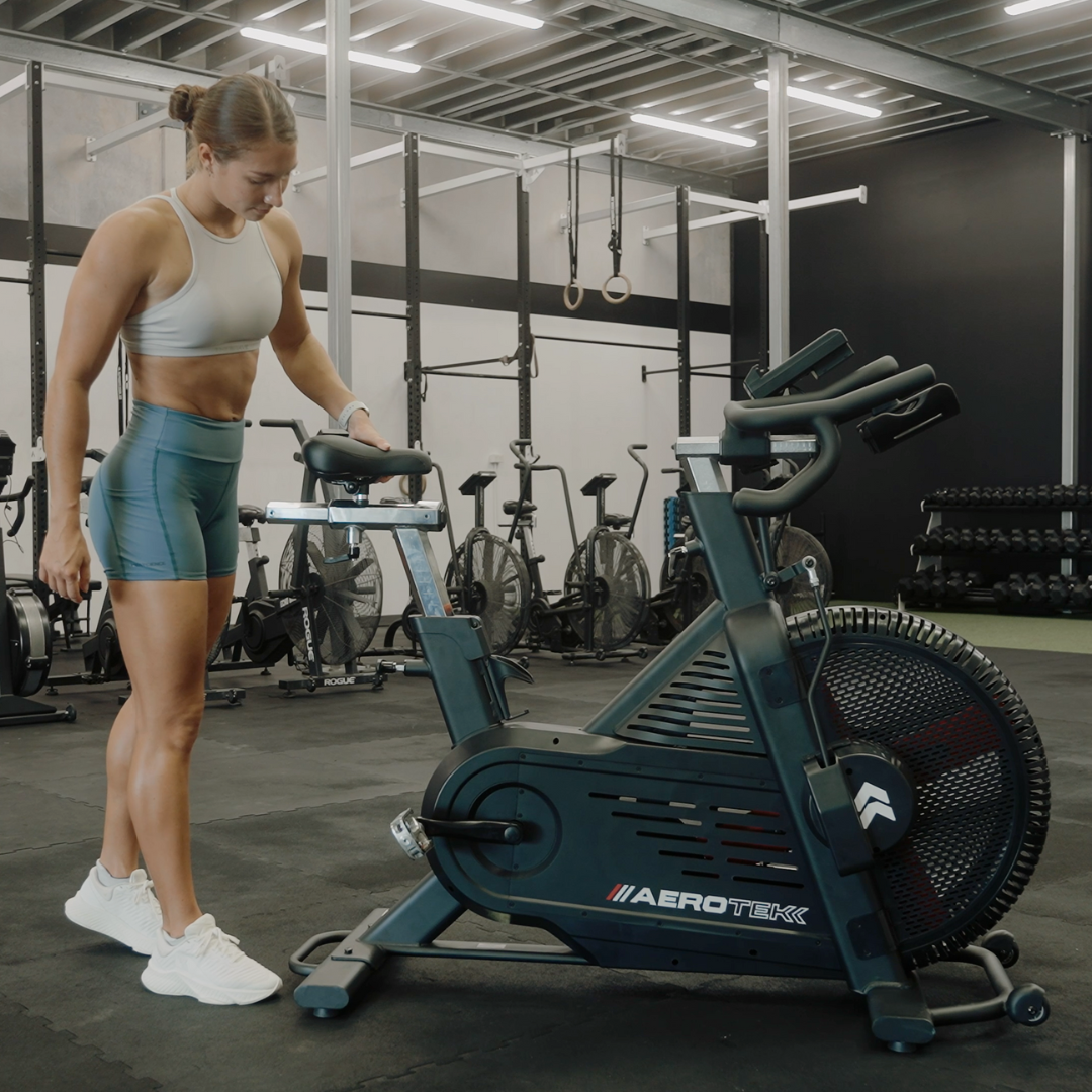 AEROTEKK CYCLE is the closest you will come to experiencing the realistic feel of climbing a steep hill on an indoor cycle ergometer, facilitated by the high loads provided in the top range of effectively calibrated 100 gears, whilst maintaining smooth positive feedback inertia.