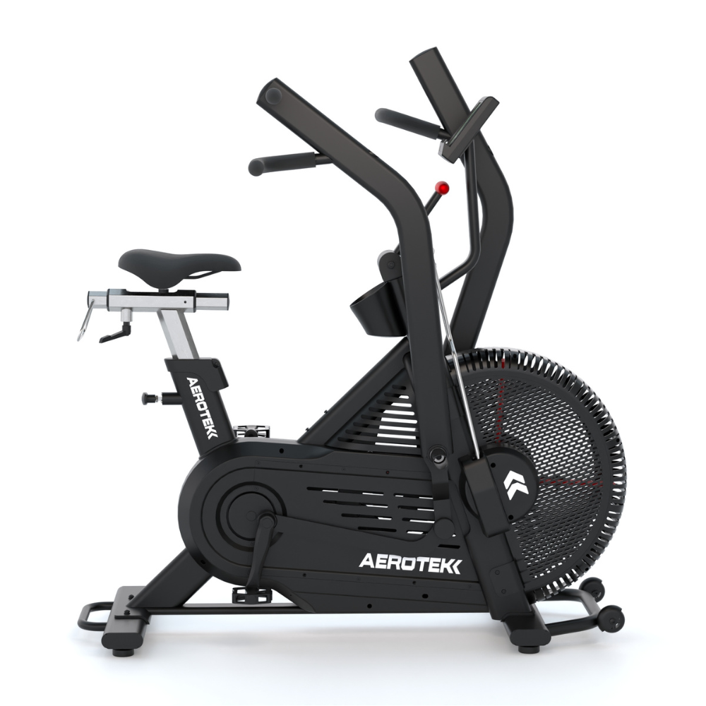 AEROTEKK BIONIC dual action upper/lower body ergometer features biomechanically optimal dual handle positions for optimal push-pull biomechanics, suiting both tall and short users.